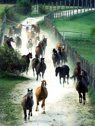 Das Vorwerk Güterstein nahe der Stadt Bad Urach - Weideauftrieb Junghengste (Foto: Archiv Boiselle)