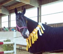 mit dem Voltigierpferd Sir Gregory ("Teddi)" aus der Landesreitschule des Haupt- und Landgestüts Marbach.