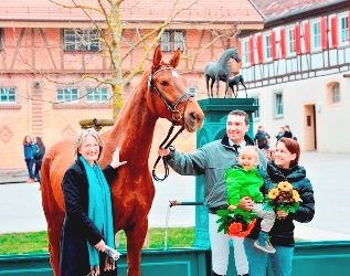 Neuer Spitzenpreis bei Marbacher Gestütsauktion: Der Top-Favorit des diesjährigen Auktionslots Vitruv (*2013, v. Vitalis aus der Hauptgestütsstute Daphne v. DACAPRIO-METTEUR) übertraf alle Erwartungen und wurde für 60.000 Euro in die Schweiz verkauft. Die Schweizer Grand-Prix-Reiterin Tanja Gerber (Möhlin) sicherte sich neben diesem dreijährigen Ausnahmepferd ebenso den dreijährigen Liebermann (v. LEMBERGER-DISCO-TÄNZER) aus der Hengstmutter des Sir Solitär v. SIR SANDRO und den fünfjährigen Luan v. LAVALETTO. „Wir freuen uns sehr, dass Vitruv und Liebermann in sportlich fördernde Hände kommen und sind sehr gespannt auf die weitere Entwicklung im Turnierstall Gerber“, so Landoberstallmeisterin Dr. Astrid von Velsen-Zerweck.