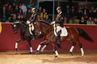 bewegungsstarke Stute in einem gemeinsamen Auftritt mit ihrem Vater