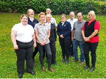 Geschafft: Strahlende Gesichter bei den erfolgreichen Absolventen. Mit auf dem Bild Hauptsattelmeister René Mau, Stellvertretender Leiter der Landesfahrschule, und Pferdewirtin Catherine Acker (Foto: Walther Krause)