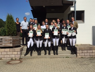 Bestandene Reitabzeichen vom Basispass bis hin zum Reitabzeichen 4 geben Grund zur Freude. Der letzte der drei Schülerreitlehrgänge in der Landesreitschule des Haupt- und Landgestüts Marbach wurde nun erfolgreich abgeschlossen. Es wurden Prüfungen zum Basispass sowie den Reitabzeichen 5 und 4 abgelegt. Die Teilnehmerinnen des erneut voll ausgebuchten Lehrgangs haben vom 29.08.bis 08.09.2016 ihr Können unter Beweis gestellt und unter den strengen Blicken der Richter in den Teildisziplinen Dressur, Springen und Theorie alles gegeben.