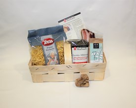 In der kalten Jahreszeit dürfen in keinem Haushalt die Zutaten für das traditionelle schwäbische Gericht „Linsen mit Spätzle“ fehlen. Das Paket beinhaltet Spätzle der schwäbischen Firma Tress, die ihre Spätzle nach „Großmutters-Art“ zubereitet. Die Gestüts-Alblinsen stammen aus eigenem Anbau in Marbach. Dazu passend beinhaltet das Paket eine Linsen-Kräutermischung für optimale Koch-Ergebnisse von „Alb-Feinkost“ aus Gomadingen und frischem Speck aus einer regionalen Metzgerei.