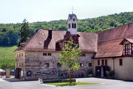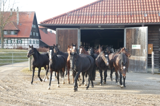Die Hofanlage des Gestütshofes Marbach wird durch eine Straße geteilt. Unterhalb dieser Straße im Tal stehen die Gebäude der Schmiede, Wagnerei, Sattlerei und Werkstatt. Weiterhin finden wir dort die Marbacher Deckstation mit den Gastboxen für Stuten.