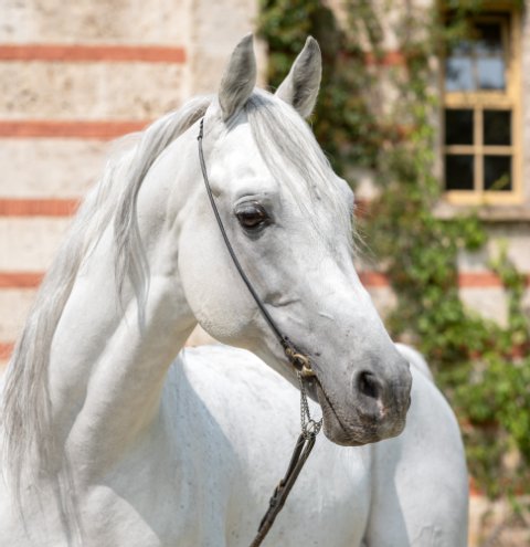 Kopfbild Naoufil ox, Schimmel Vollblutaraber