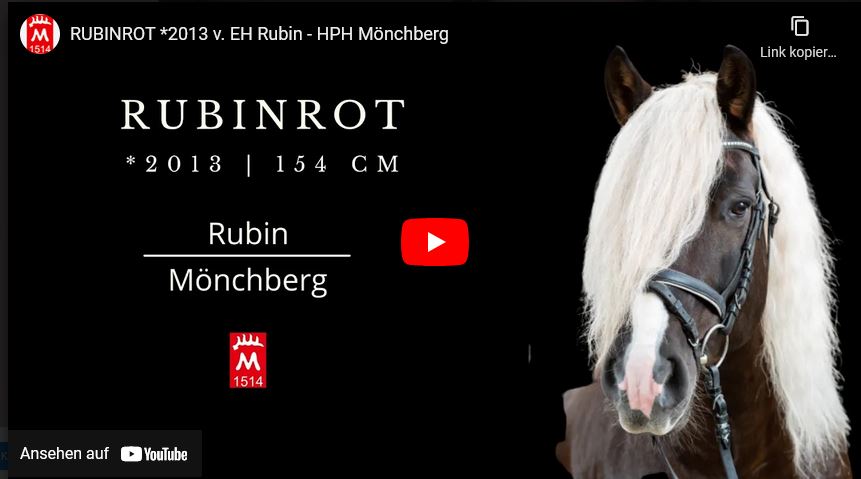 Maskulin, kraftvoll und energisch: Mittlerweile ausgereift, verkörpert Rubinrot in besonderer Weise den Rassetyp des Schwarzwälder Kaltblutpferdes. Als Reit- und Fahrpferd ist er ein zuverlässiger Partner im Gestütsdienst. Er steht auf einem kräftigen, gut ausgeprägten, trockenen Fundament. Der Schritt ist geregelt und fleißig. Im Trab beeindruckt er durch energisches Abfußen, stets elastisch und taktsicher. Seine ersten Jahrgänge fallen mit gut entwickelten, kräftigen und gut bemuskelten Fohlen auf.