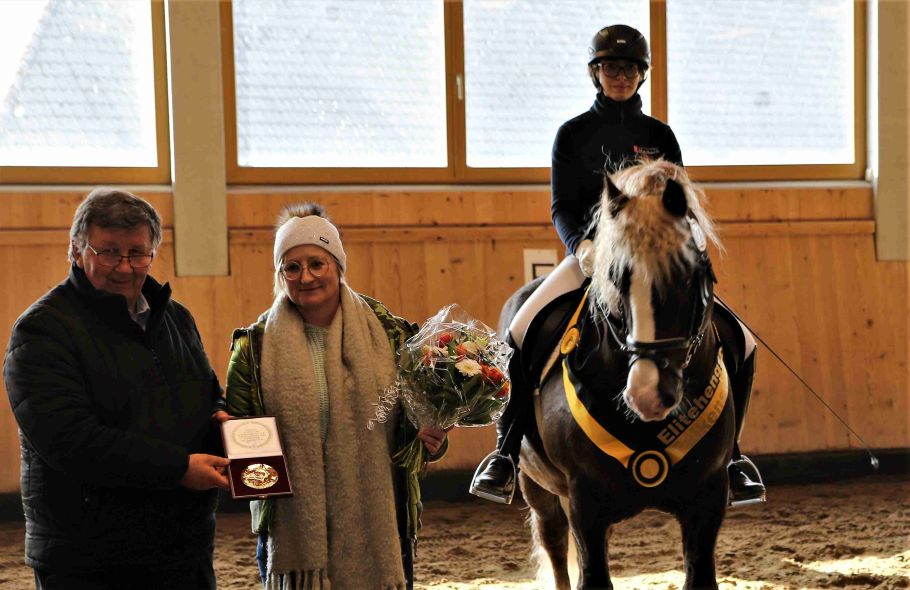 Der Schwarzwälder Hengst Falkenstein v. Federsee wurde anlässlich des Schwarzwälder Züchtertages am 20. März 2022 in St. Märgen als Elitehengst ausgezeichnet